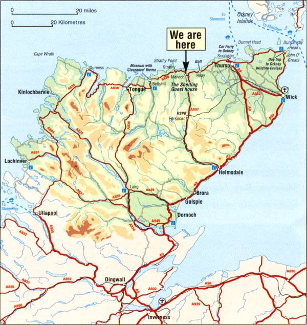 - Stay at The Sheiling on your way to/from the Orkney Islands - the car ferry terminal at Scrabster is just 20 minutes drive away.